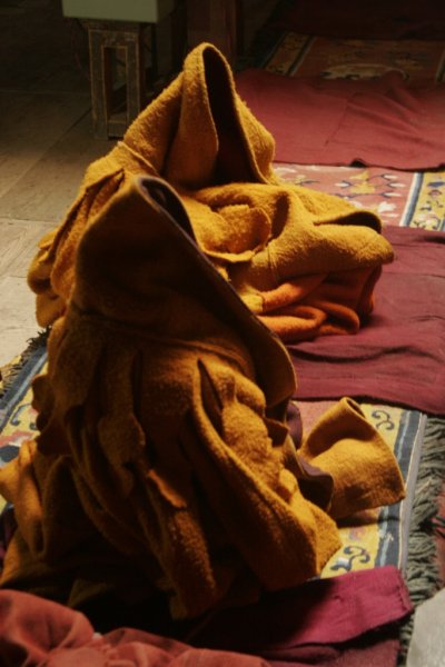 Blanketed monks at Karsha gompa